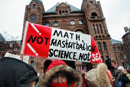 That's the question raging in Ontario this week, as parents and school officials in the province debate a new health and physical education curriculum that expands the range of sexual education topics to kids the parents deem too young. On Monday, a Toronto public elementary school's classrooms stood nearly empty, reported CBC News, as parents objected to the change and pulled out over 1,000 students from school. According to a letter posted on Facebook, parents are objecting to what they consider an "age-inappropriate" curriculum.