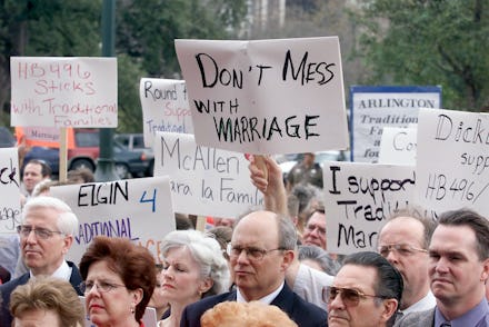"This irresponsible and mean-spirited bill doesn't just put Texas on a collision course with a potential Supreme Court ruling," Terri Burke, executive director of the American Civil Liberties Union of Texas, said in a statement to Mic. "Its passage would also bring national condemnation by attempting to lock in discrimination against gay and lesbian couples who simply want to make a lifetime commitment and protect their families the same way everyone else does.