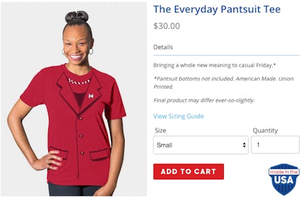 The store has an array of hoodies, tank tops and onesies all designed to celebrate the prospect of the first female president in 2016. The real gem of the grand opening is the "everyday pantsuit tee," which promises to bring "a whole new meaning to casual Friday."