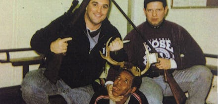 Believed to have been taken at some time between 1999 and 2003, this Polaroid published late Tuesday shows white former CPD Officers Timothy McDermott and Jerome Finnigan posing with what the Chicago Sun-Times reports police admit is an "unidentified African-American drug suspect" wearing antlers. Both law enforcement personnel can be seen toting rifles, as if the black man under their knees were a hunting trophy.