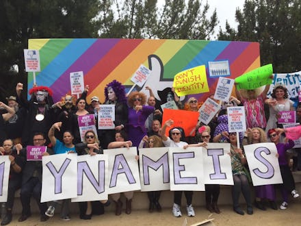 On the heels of Caitlyn Jenner's stunning appearance on the cover of Vanity Fair, members of the drag and transgender communities traveled to Facebook's Menlo Park, California, headquarters on Monday morning to fight for their right to publicly and proudly declare their true selves.