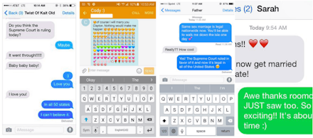 The court's verdict legalizing same-sex marriage in the United States is a watershed moment for basic human rights, and one that will have an effect on relationships all over the country. While the excitement of the moment exploded at the foot of the Supreme Court, countless more people quickly took to their smartphones to celebrate the news with the people in our lives we love most.