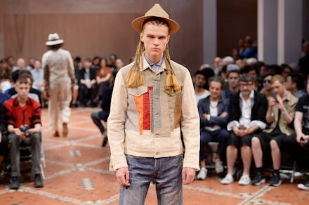 On Friday, designer Junya Watanabe presented a menswear show with models draped in beads, bones, masks and other tribal accoutrements. The African-inspired pièce de résistance: headpieces piled high with braided, twisted hair.