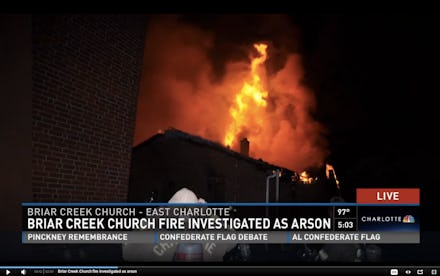 On Tuesday, the Mt. Zion African Methodist Episcopal Church in Greeleyville, South Carolina, caught on fire, making it the sixth black church in a Southern state to burn since the deadly Charleston massacre, the hate crime in South Carolina where nine black people were shot and killed because of their race.