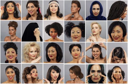 Learning about other women miles away: The "100 Years" videos are wordless time-lapses that showcase one look from each decade, starting with 1910 through today. The first episode focused on the United States and showed a white brunette woman wearing the styles — from hair to makeup to headgear — we typically picture: a sassy bob in the 1920s, big hair in the 1980s, grunge makeup in the 1990s.