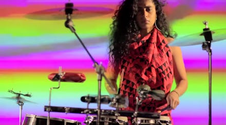 Abovitz believes drumming has connotations of masculine traits: "aggressiveness, being sweaty, being physically strong, being confident, sitting with your legs spread open, being in clubs late at night, being in command of a multi-piece instrument with lots of moving parts," she told Mic. She feels media and marketing are the best way to break this type of socialization. And by presenting a more equal picture of drumming in music media, more girls will be able to see themselves behind the set and start to change the tune.