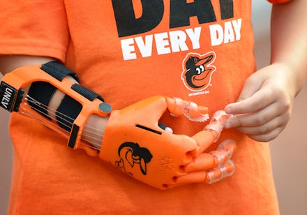 Dawson is the owner of a neat little device called the Flexy-Hand 2, a 3-D printed prosthetic hand devised by the University of Nevada, Las Vegas. On Monday night, before the Baltimore crowd, she threw out the ceremonial first pitch with the help of her 3-D printed creation.