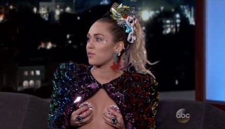 Cyrus, who opted for pasties rather than a shirt, jokingly told Kimmel, "To be honest, I'm a little cold," when asked how she was. "I would have worn a shirt — actually I wouldn't have — but you could have warned me."