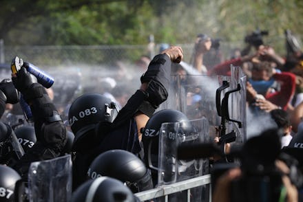 Meanwhile, protests in response to police killings of people of color are becoming more widespread, and police are resorting to more severe methods to contain the crowds. "The continuum of weapons is really wide," Mckesson told Mic. "The sound cannon [Long Range Acoustic Device], to pepper balls, to smoke bombs, to pepper spray, to tear gas — the gamut has been used over the past year against protesters." And if police "haven't used it directly," Mckesson said, "they have had it ready to be used at a moment's notice."