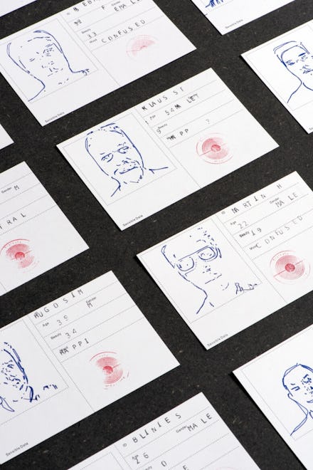 The second machine wants to print that information on the card, but first it asks for your email address — which, paired up with your Facebook or Google account (or any place you've given your email address), allows for a conclusive map of your identity. Once you email the robot, it'll print your info on the card.