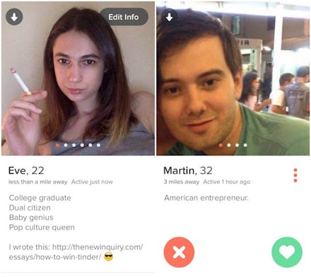 Tinder is a vast expanse of lonely millennials looking for some form of connection, offering the promise of either a one-night stand with a total stranger or the promise of everlasting love (or at the very least, someone to get brunch with). Out of the millions of eligible bachelors using the app in New York City, I was lucky enough to match with Martin Shkreli, aka one of the most hated men in America. Or perhaps I was unlucky. I'm not sure yet.