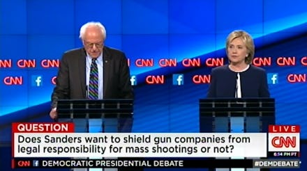 Moderator Anderson Cooper asked Sanders whether he stood by his moderate record on gun rights, asking the senator whether he still supported civil immunity for gun manufacturers in the wake of shootings, as he did in 2005.