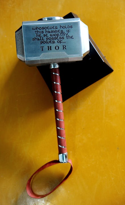 To that, Pan added magnets and hardware that allow the device to disconnect from a magnetic field with the touch of his finger (and his fingerprint alone). After disguising the device as Thor's hammer, Pan was ready to hit the streets with his gag.