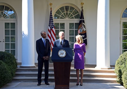 Biden made the announcement in the White House Rose Garden shortly after noon, flanked by President Barack Obama and his wife, Dr. Jill Biden. He said the grieving process he and his family have experienced following the death of his son Beau made it impossible for him to wage a campaign for the White House.