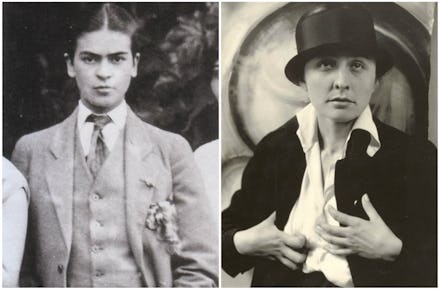 Vintage images show Kahlo in a variety of suits and slicked-back hair, standing tall on her own or with her hand confidently draped on a patriarch's shoulder. This was the mid-1920s, and here was Kahlo laughing in the face of society's beauty standards and expectations in a three-piece suit, while the women around her wore traditional flouncy, below-the-knee dresses. It's just more proof that Kahlo always did whatever she damn well pleased — and looked great while doing so.