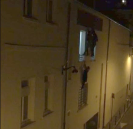 The video was shot by French journalist Daniel Psenny, who has an apartment near the hall. It shows Parisians fleeing out a back exit of the Bataclan. In the chaos, gunfire can be clearly heard while bodies of the dead and injured lay in the street. In some cases people tried to escape through the windows, while others dragged injured friends from the carnage.