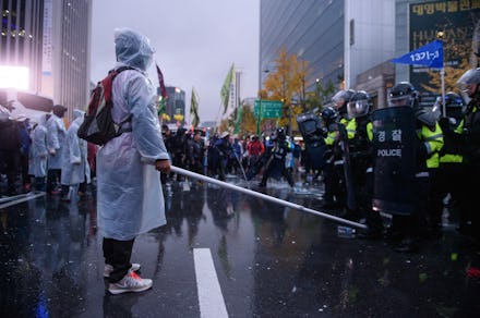 "The government was fully prepared to guarantee a lawful and peaceful rally, but some people came prepared with illegal equipment such as steel pipes and conducted a violent protest," Justice Minister Kim Hyun-woong said during a news conference, according to Reuters. "These activities were a grave challenge to law and order and public authority, and they will not be tolerated."