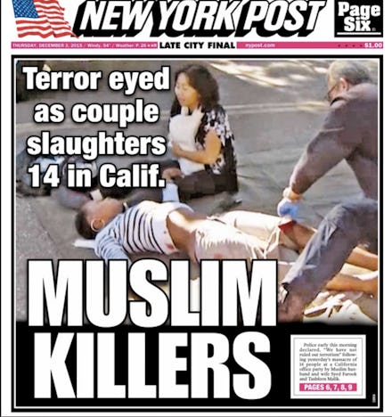 A version of the New York Post's cover on Thursday features "Muslim Killers" in giant letters, over an image of injured victims from the San Bernardino shooting, and it has ruffled more than a few feathers.