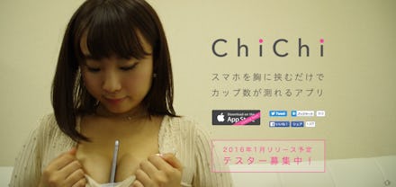 Japanese news outlets along with the Mirror are reporting on ChiChi, which bills itself as an app to help women measure their bust sizes easily and accurately. The three-step process, as seen on ChiChi's website, is pretty darn simple: Take your sumaho (short for sumatohounu, "smartphone" in Japanese), sandwich it in between your breasts and get your cup size.