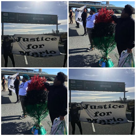 At 3 p.m. EST, protests began the five other cities. "We understand that money talks [and] the police force is really here to protect white wealth, not really to protect black bodies," Malkia Cyril, a spokesperson for Black Lives Matter Bay Area, told Mic. "We recognize that in order to make sure people can truly hear this message, we're going to stop business as usual and stop the flow of commerce on a day where a lot of money is going to be spent. We want to make people pay attention to the fact that black humanity is being denied."