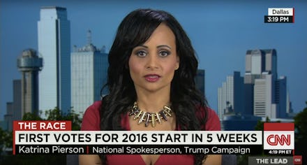 On Tuesday afternoon, Donald Trump spokesperson Katrina Pierson appeared on CNN's The Lead to talk about her candidate's history with women and his recent criticism of former president Bill Clinton.