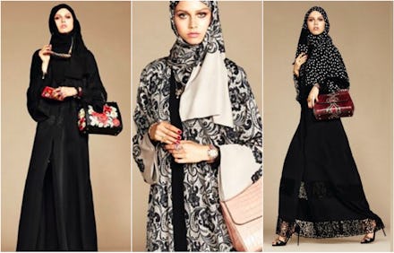 Still, even as the fashion world extends deep into the Middle East, with luxury stores littering Dubai, abayas haven't exactly been flooding the runways. But for a brand like Dolce and Gabbana, which cultivates independent wealthy clients, particularly through its Alta Moda collections, these Middle Eastern buyers — many of whom may be Muslim — are important. That's why, Stefano Gabbana said this past summer, he and Domenico Dolce were planning a special collection aimed at Muslim shoppers.