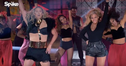 Sashaying out in spectacular style, Queen Bey herself joined the fray, lip-syncing to her own hit and dancing in line with Tatum. It's quite a sight: the hunky actor in drag strutting alongside the queen herself. For all the show's failings when it comes to impressive lip-syncing, Lip Sync Battle is great for these can't-believe-it moments.