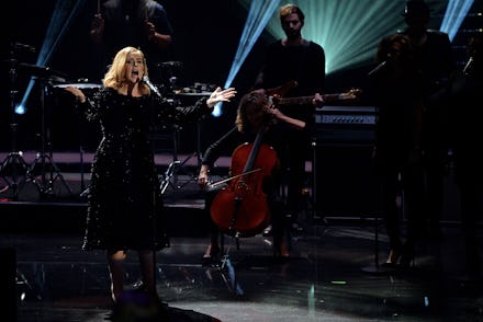 The British singer wowed the late night host, who called Adele "the female Phil Collins" during the segment, with a Spice Girls cover. The two sang the 1996 Spice Girls breakout hit, "Wannabe".