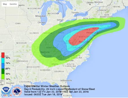 The winter storm threat looks strongest for the nation's capital. Washington, D.C., and Baltimore's National Weather Service reported "with high confidence that a high impact winter storm will affect most, if not all of the area Friday through Saturday."
