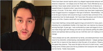 "I do not want to be the type of person who would let drugs or alcohol take command of his life and compromise how he treats people," Berru wrote in his statement. "Yet I have been this person, and it's time to put a stop to all of this. Create a world with one less inappropriate man."