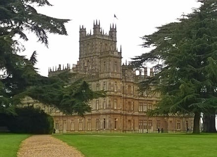 "The library was assembled by the fourth Earl," the dowager tells the tour group. "He loved books."