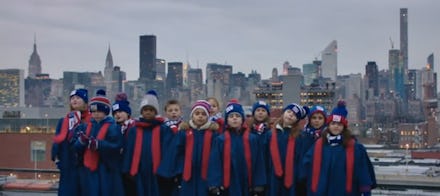The camera then pans over the "Super Bowl Babies Choir," a group of kids and grown-ups who were born nine months after their cities' teams scored a Super Bowl victory. There are New York Giants Super Bowl babies, who were born after the Giants' 2008 victory. There are 49-year-old Green Bay Packers babies. There are even wee 1-year-old Seattle Seahawks babies.
