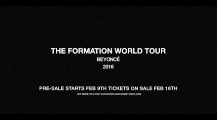 It's not enough that Beyoncé snatched our souls and slayed the Super Bowl 50 halftime show — Queen Bey just announced the Formation World Tour. According to her website (which, as of press time, had crashed), the tour's presale begins Feb. 9 and regular ticket sales begin Feb. 16.