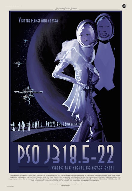 Earth is included too, advertised as "Your oasis in space, where the air is free and breathing is easy." All 14 posters can be downloaded for free on the JPL website.