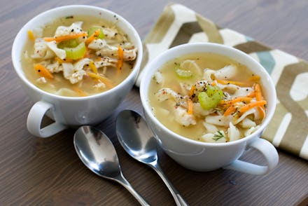Chicken soup may be good for the soul but it's also good for sick people too. A 2000 study found that hot chicken soup slows down neutrophils, which are the invader-attacking white blood cells, so that they can stay in the one concentrated area that needs the most healing.