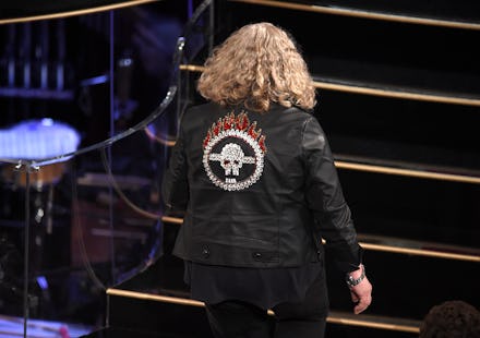 Beavan picked up her second Oscar win (she won in 1987 for A Room with a View) outfitted in a leather jacket with a bedazzled skull and flames across the back.