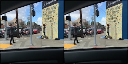 6. Clayton, the mural's designer, addressed the controversy via Facebook late Tuesday night. In his post, he urged people not to focus solely on the outrage factor of the photo and instead reflect on the systemic socioeconomic issues that led to the man in the image sleeping on the street.