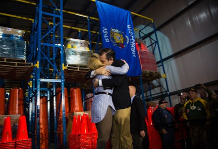 In Wisconsin, the senator and his wife shared a warm hug in front of supporters at a town hall event in Oshkosh.