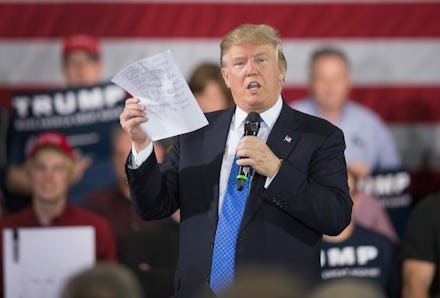 "There's a $2.2 billion deficit and the schools were going begging and everything was going begging because he didn't want to raise taxes because he was going to run for president," Trump said in remarks quoted by the Guardian. "So instead of raising taxes, he cut back on schools, he cut back on highways, he cut back on a lot of things."