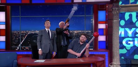 Bernie Sanders Surprised the Colbert Audience With a T-Shirt Cannon