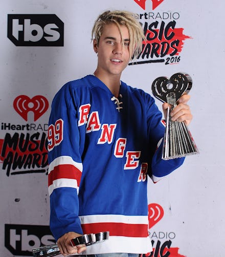 Before Justin Bieber attended the iHeartRadio Music Awards Sunday night, he slipped into a pair of ripped acid wash jeans and an oversized New York Rangers jersey, and had someone twist his hair into dreadlocks.