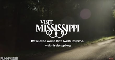 The ad concludes with a grim reminder that the state is not alone in its discrimination: "Visit Mississippi — we're even worse than North Carolina!"