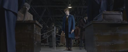 Unlike all prior works in the Harry Potter universe, Fantastic Beasts is set in the United States in the year 1926, and stars a brand new protagonist in the form of Newt Scamander (Eddie Redmayne), a famed magizoologist (like a regular zoologist, but with more magic). Scamander's in New York to visit the Magical Congress of the United States of America. In this trailer, he's attempting to smuggle a briefcase filled with the objects of his study and their habitats.