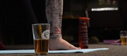 Every Monday and Wednesday, Lindsay Istace teaches the off-beat yoga style in the basement of Dickens Pub in Calgary, Canada, according to Self. In this new yoga class, people practice a Vinyasa flow that's accompanied by swearing, screaming, heavy metal music and beer.