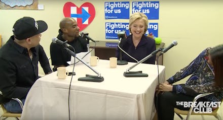 Democratic presidential candidate Hillary Clinton visited New York hip-hop radio station Power 105.1's morning show The Breakfast Club on Monday, ahead of Tuesday's state primary.