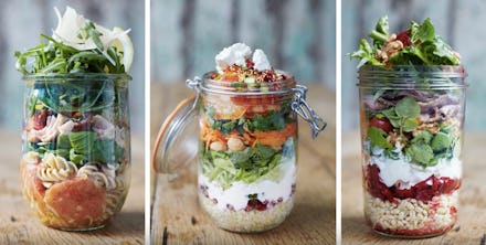 Oliver suggests layering ingredients in your jar salad so that you're getting a balanced meal with a balance of textures and flavors.