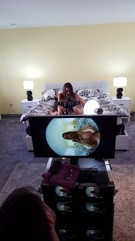Assume your positions: During production, the male talent is lying on his back with his head straight back, eight 4K resolution cameras hoisted above his chest, obscuring his view of the female talent.