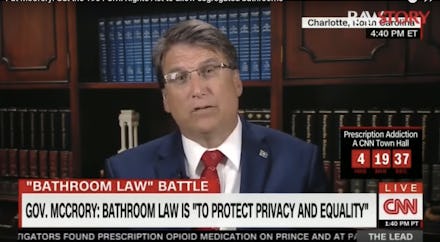 While McCrory didn't go so far as to say that transgender people need their own restroom, he did embrace a "separate but equal" view and imply that trans people should use a separate unisex bathroom.