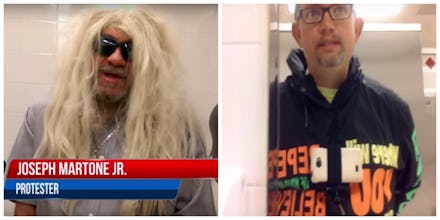 On May 10, protester Joseph Martone Jr. donned a tattered blond wig and a skirt and entered a Colorado Target in protest of the store's bathroom policy, the Colorado Springs Gazette reported.