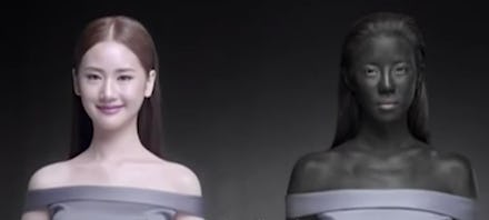 For starters, it features a black man being shoved into a washing machine and coming out "clean" as a fair-skinned Chinese man.
